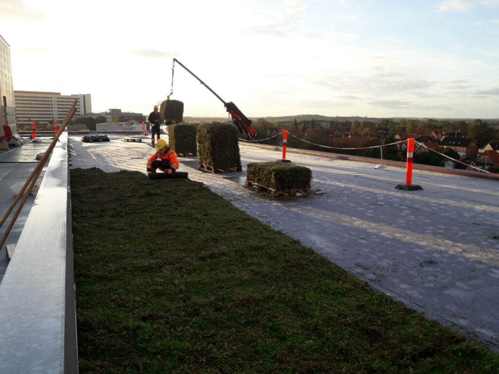 Kaj Bech A/S er dygtige anlægsgartnere og vant til at håndtere specialopgaver der kræver ekstra sikkerhed og specialgrej. Planterne kan optage op mod halvdelen af det regnvand der lander på det, så kloakker og hele regnvands-systemet aflastes.