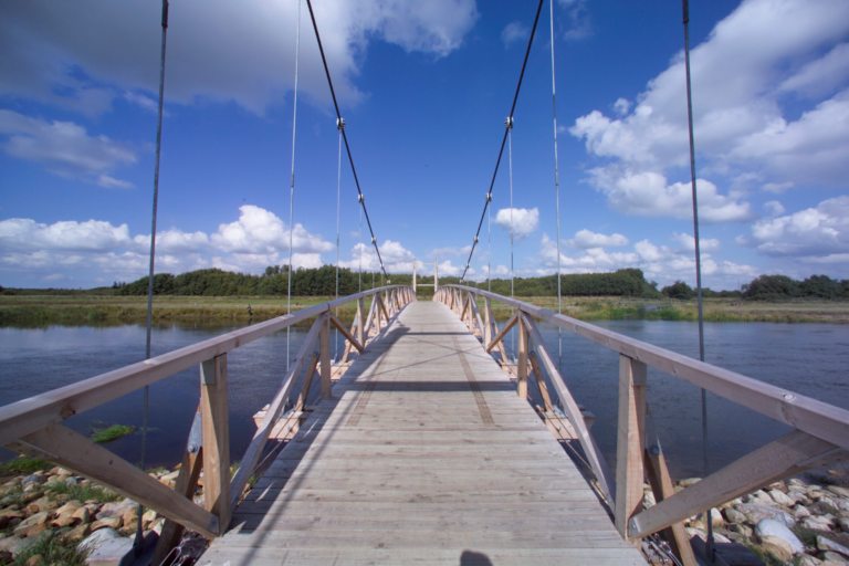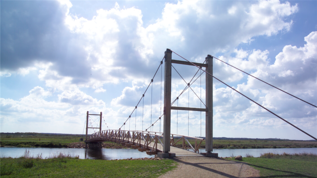 Kaj Bech A/S har udført to identiske hængebroer for Skov– og Naturstyrelsen over Skjern Å ved hhv. Lundnæs og Bådhavn.