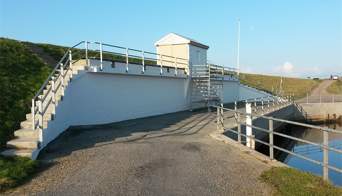Kaj Bech A/S har i hovedentreprise stået for Renovering af 4 stik betongennemløb i Sneum Sluse.