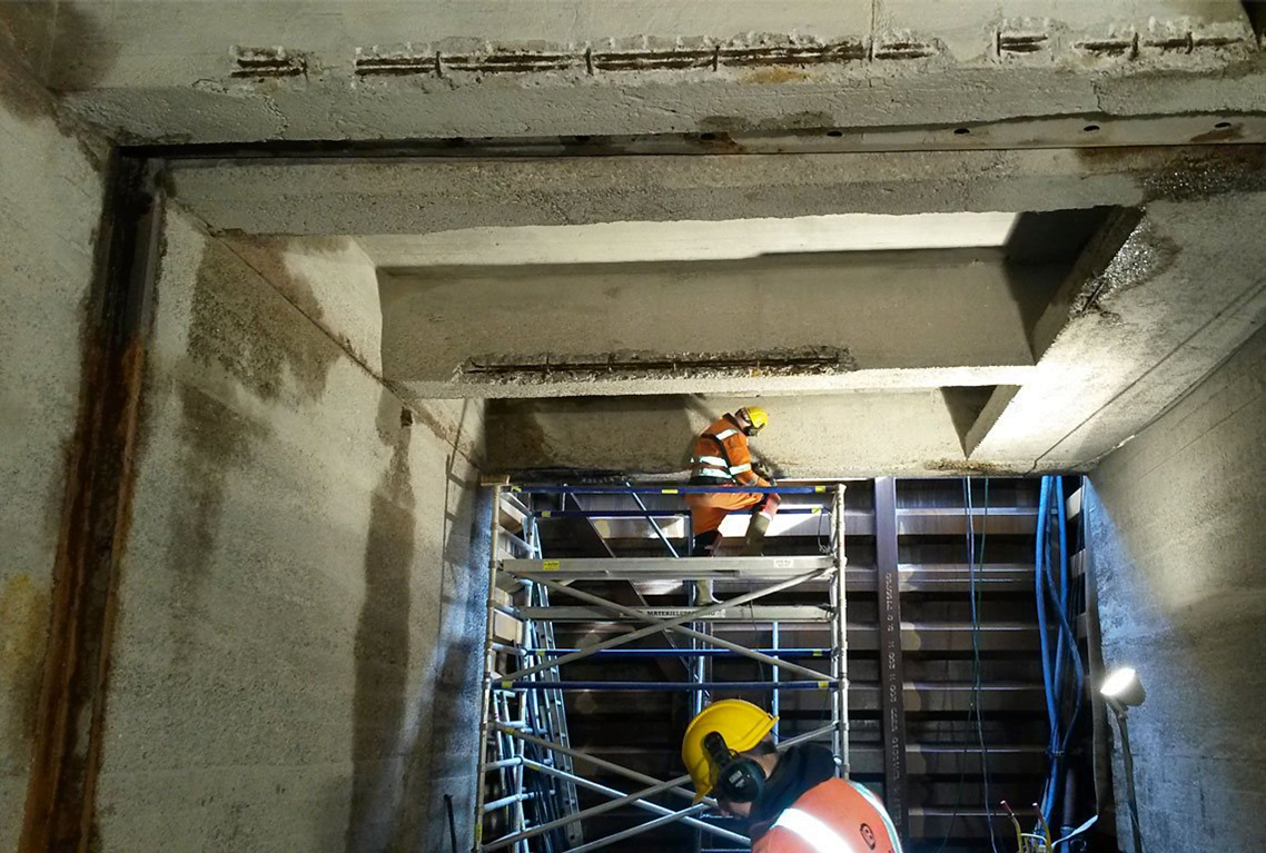 - Afrensning og sprøjtestøbning af 4 stk. betongennemløb m.v. inkl. beton reparationer